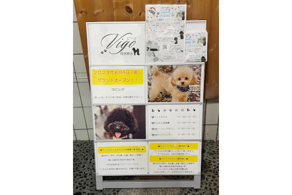 こんにちは、大阪市阿倍野区にあるペットホテル&トリミングサロンVigo阿倍野店です。当店は、ペットホテル・犬の保育園・サロン・ペットシッターサービスを行っており、ワンちゃんとその飼い主様の為の複合施設。「大切なワンちゃんの笑顔あふれるもう一つのお家」を目指して、2023年8月にお店をOPENしました。